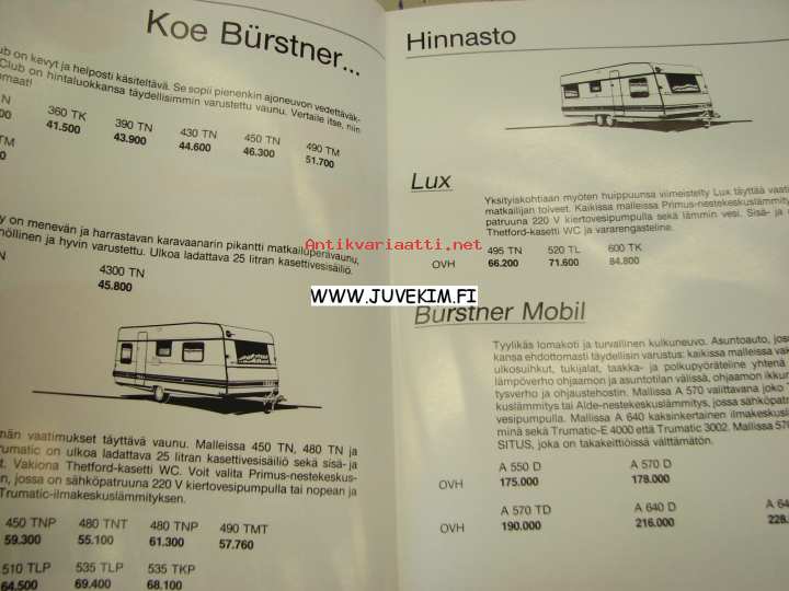 Bürstner, 19??A-4 kokoinen myyntiesite.