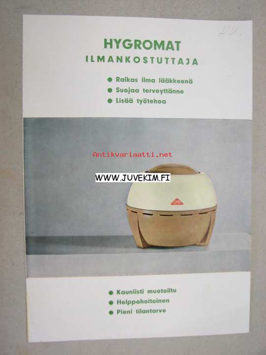 | Saatavilla | 1 kpl | | Julkaisuvuosi | 19?? | | Sivuja | 4 | | Kunto | K3 | | Kielet | Suomi |
