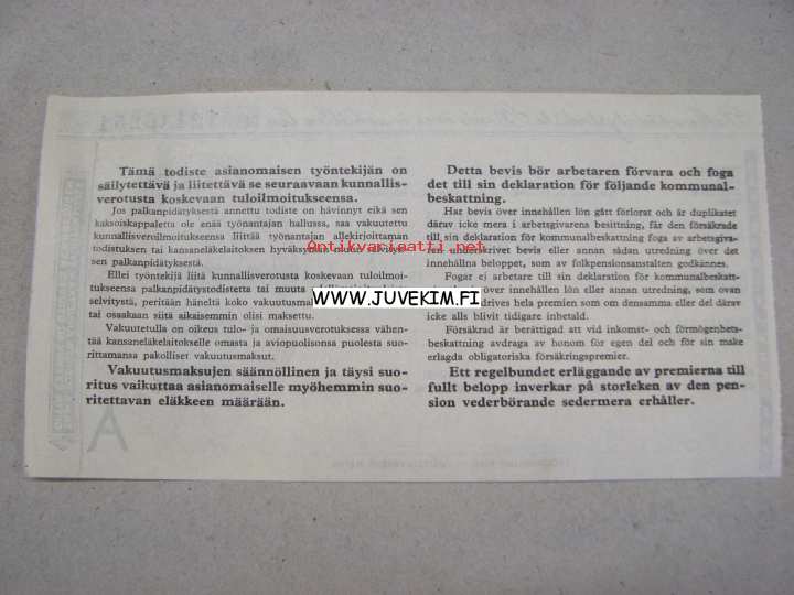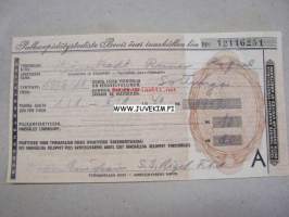 19409 x 16 cm kuitti perityistä maksuista. Harvinainen, palkansaajat liittivät nämä aina veroilmoitukseensa, joten näitä ei ole paljon säilynyt.