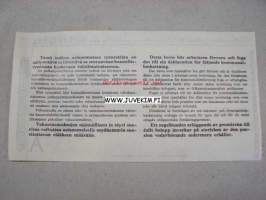| Saatavilla | 1 kpl | | Julkaisuvuosi | 1940 | | Kunto | K3 | | Kielet | Suomi |
