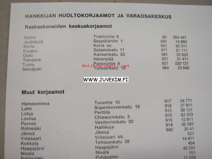 | Saatavilla | 1 kpl | | Julkaisuvuosi | 197? | | Sivuja | 2 | | Kunto | K3 | | Kielet | Suomi |