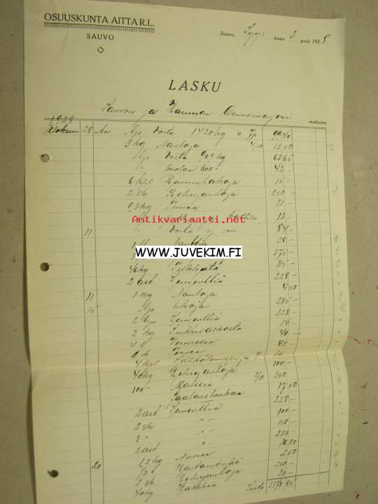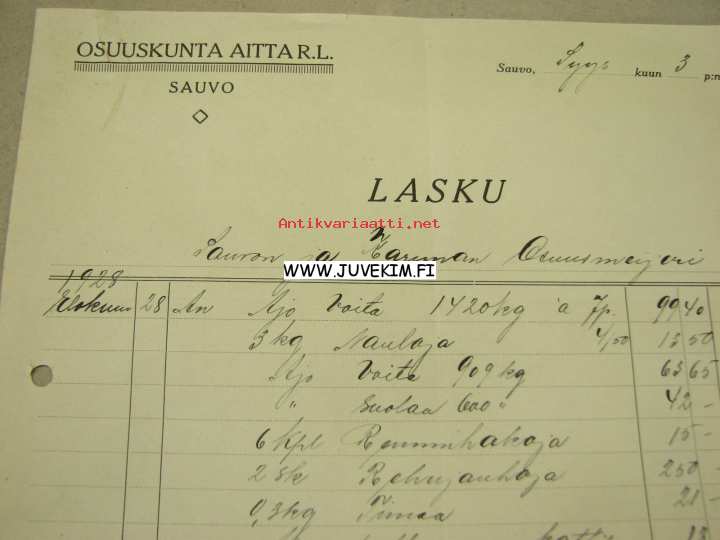 Osuuskunta Aitta, Sauvo, 3.9.1928 -asiakirja