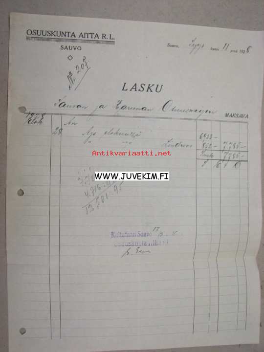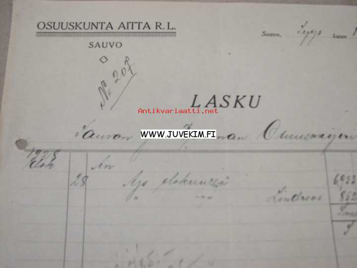 Osuuskunta Aitta, Sauvo, 11.9.1928 -asiakirja