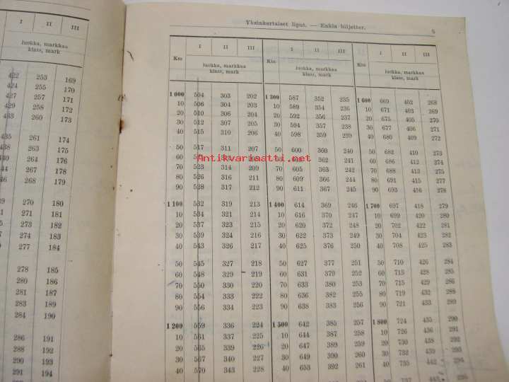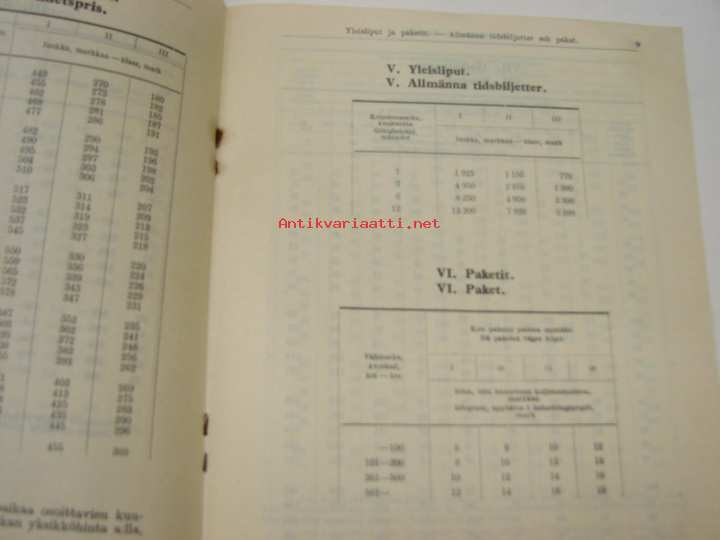 VR Valtionrautatiet matkalippujen sekä matka-, kiito- ja pakettitavaran hintataulukot 1940