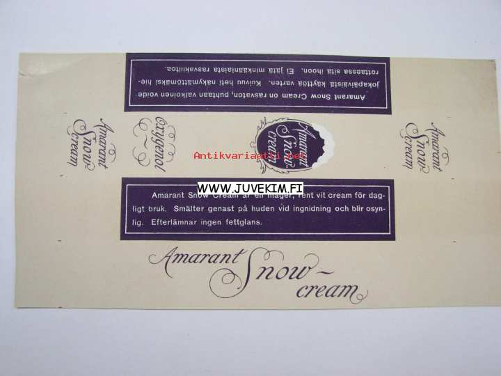 Oxygenol Amarant Snow cream -tuotemerkki / etiketti