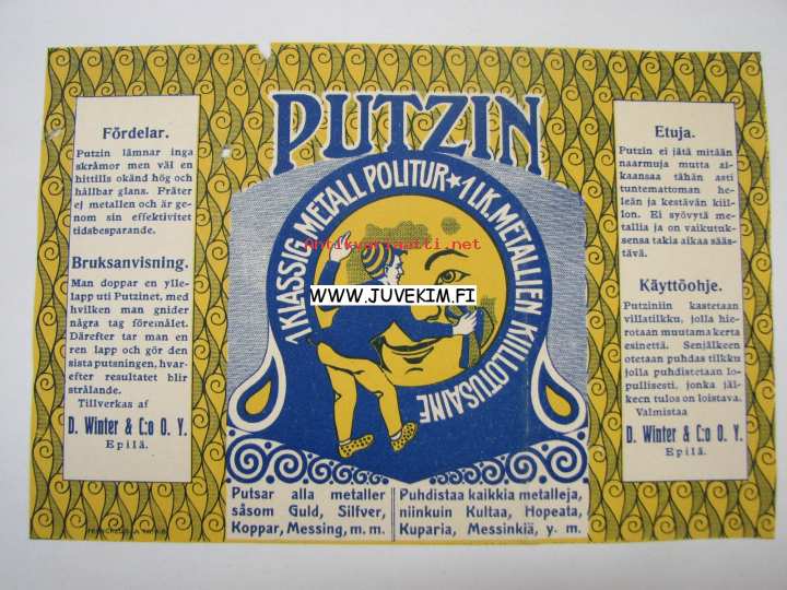 D. Winter & Co OY Epilä "Putzin" metallinkiillotusaine -tuotemerkki / etiketti, koko 11 x 17 cm.