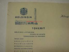 Helsingin Toverit, 195021 x 30 cm asiakirja.