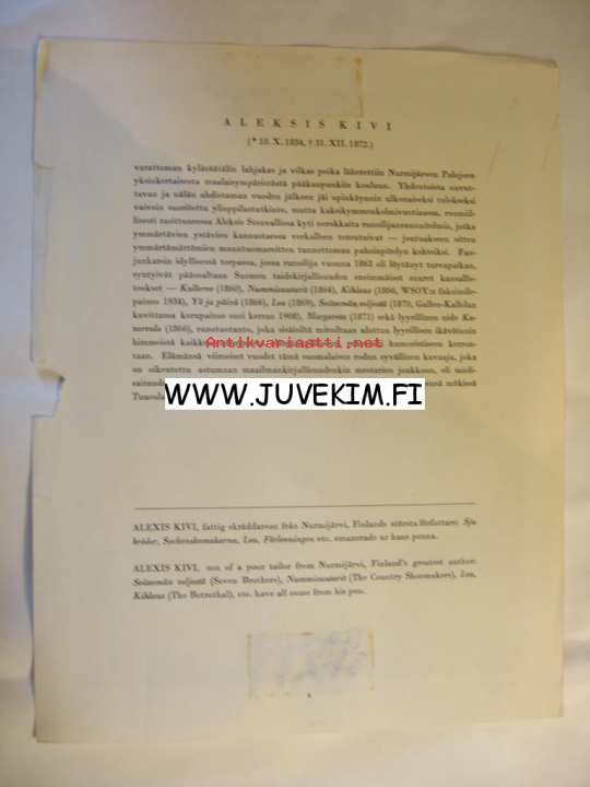 | Saatavilla | 1 kpl | | Julkaisuvuosi | 1928 | | Kunto | K2 | | Pala pois | | Kielet | Suomi |