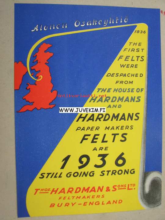 Thos. Hardman & Sons Ltd / Alonen Oy -paperiteollisuuden mainos