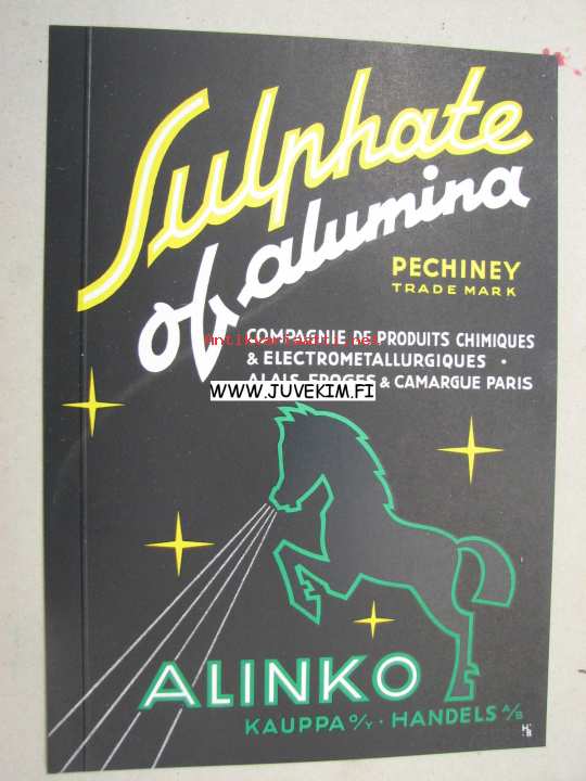 Sulphate of Alumina / Alinko Kauppa Oy -paperiteollisuuden mainos