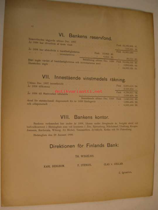 Finlands Bank berättelse om förvaltningen 31.12.1898