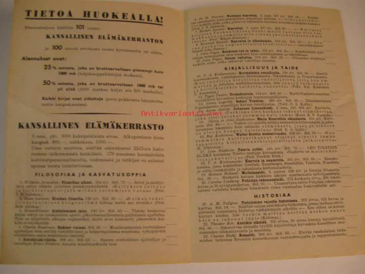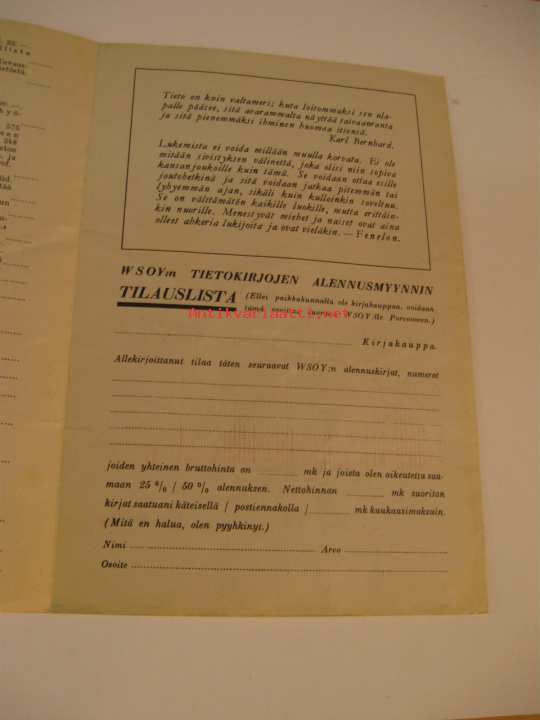 WSOY:n tietokirjojen alennusmyynti 1938