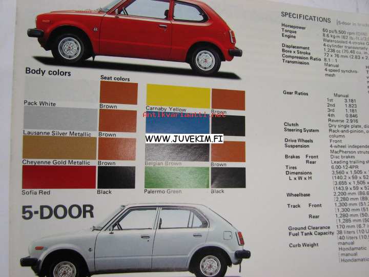 Honda Civic 1200 3-door, 1200 5-door -myyntiesite