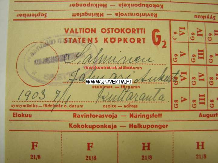 Valtion ostokortti G2 Jalmari Salminen Kultaranta Naantali