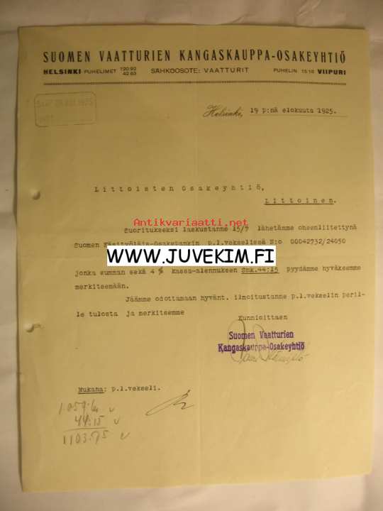 Suomen Vaatturien Kangaskauppa - Osakeyhtiö, 1925