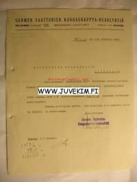 Suomen Vaatturien Kangaskauppa - Osakeyhtiö Helsinki 19.08.1925 -asiakirja