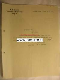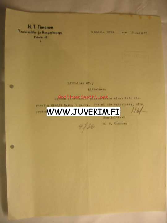 H. T. Timonen Vaatetus ja Kangaskauppa Iisalmi 13.9.1937 -asiakirja