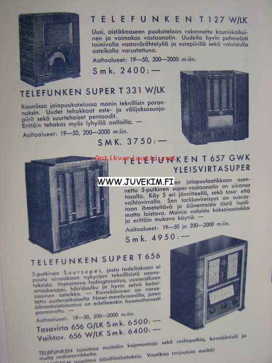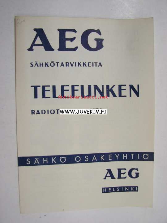 AEG sähkötarvikkeita Telefunken radiotarvikkeita -myyntiesite