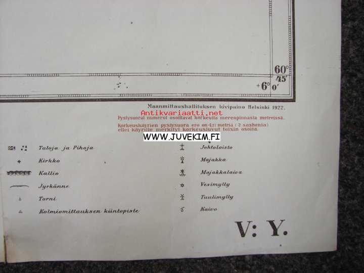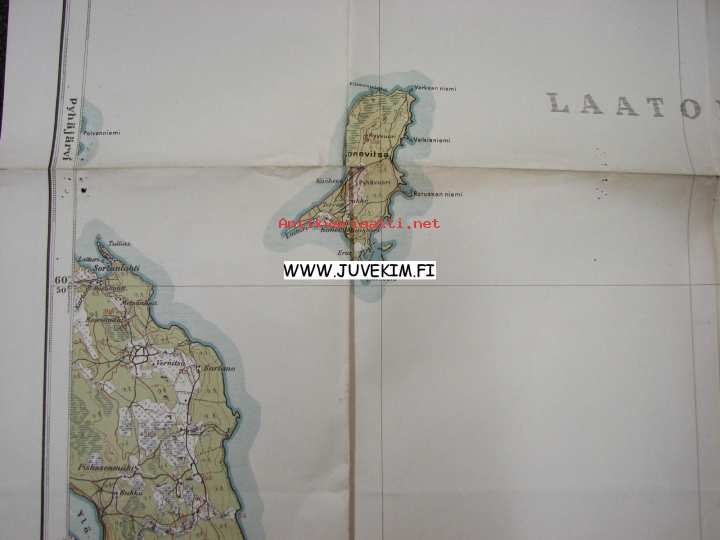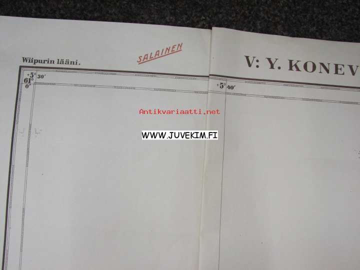 Maanmittaushallitus, 192260 x 70 cm kartta, ollut kapteeni Jonkan (Jonkka) karttalaukussa mukana tositoimissa.