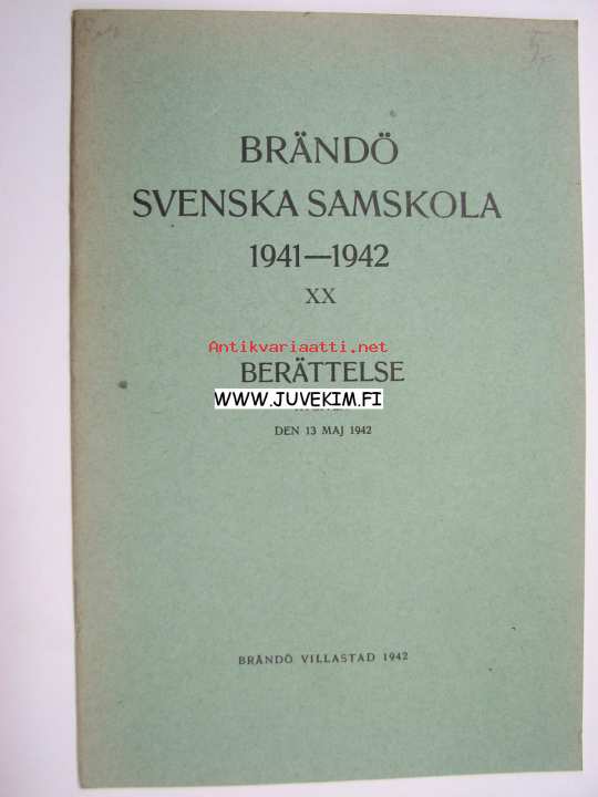 Brändö Svenska Samskola 1941-1942 XX berättelse avgiven den 13 maj 1942