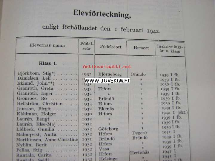 Tölö Svenska Samskola, 194215 x 21 cm vihko.