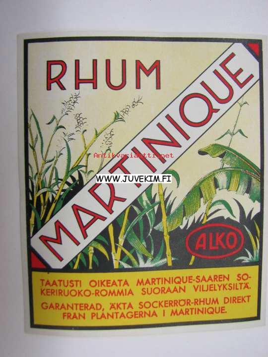 Alko Rhum Martinique -viinaetiketti 1930-luvulta