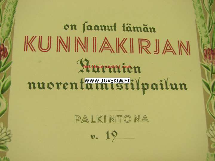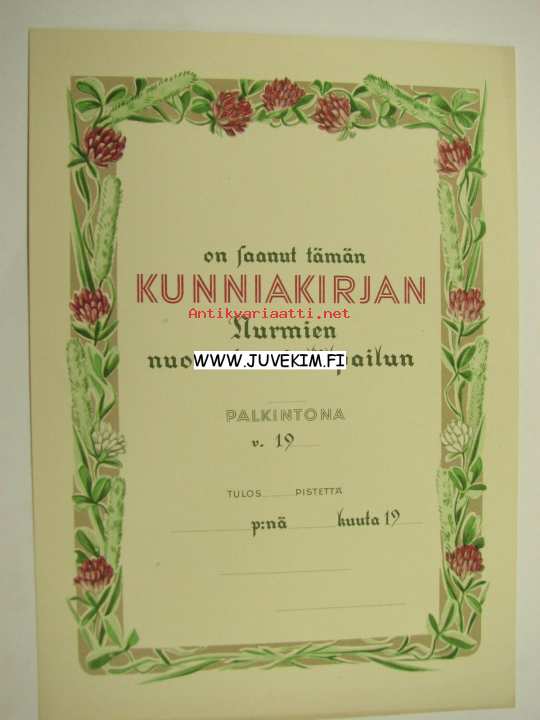 | Saatavilla | 1 kpl | | Julkaisuvuosi | 19?? | | Kunto | K4 | | Kielet | Suomi |
