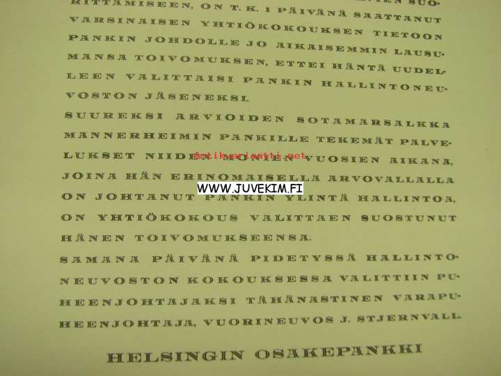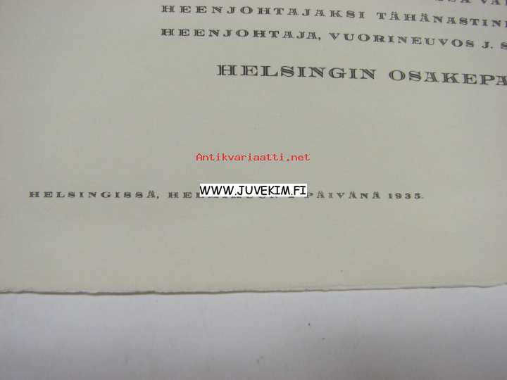 Helsingin Osakepankki, 193523 x 28 cm painate. Harvinainen painate.