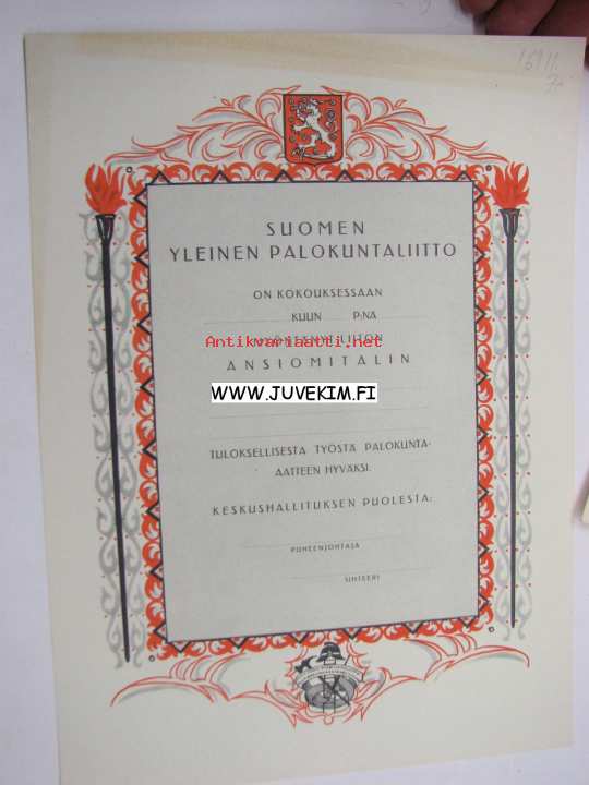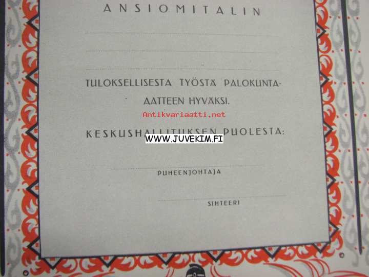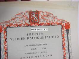 Suomen Yleinen Palokuntaliitto ansiomitali -myöntökirja