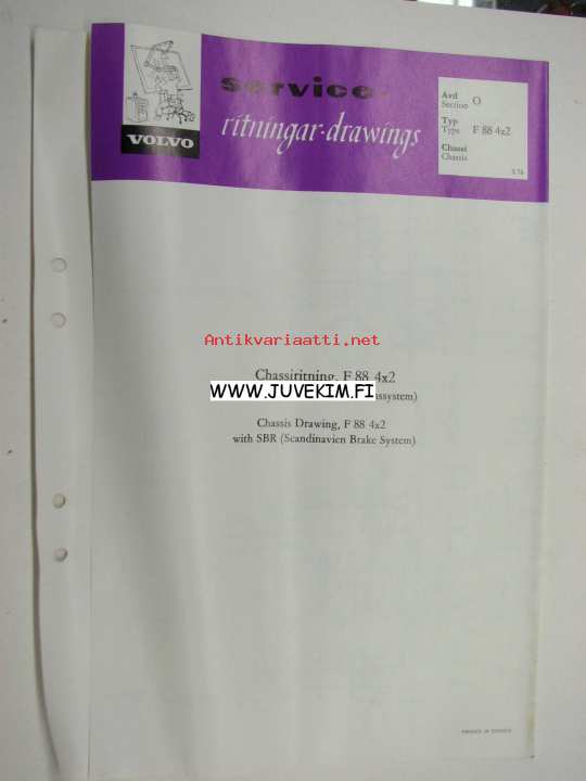 Volvo Chassis Drawing F 88 4x2 3.76 with Scandinavian Brake System -piirustukset