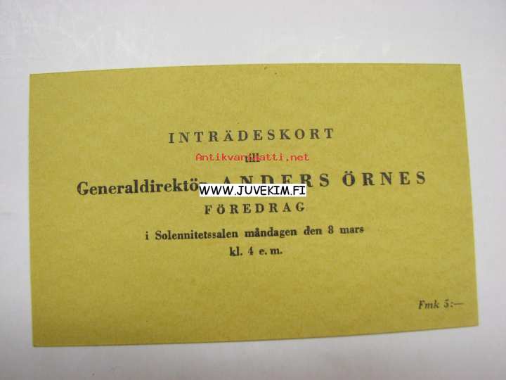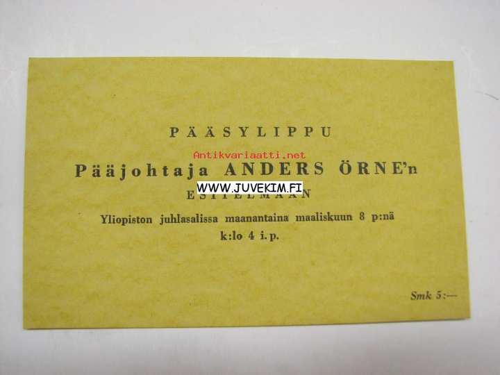 Pääsylippu Pääjohtaja Anders Örne´n esitelmään