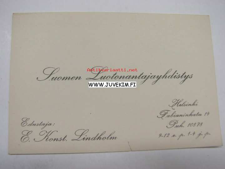 Suomen Luotonantajayhdistys, E. Konst. Lindholm -käyntikortti