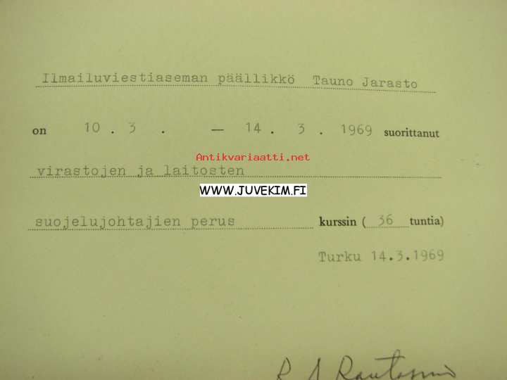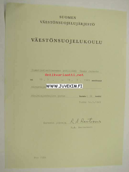Suomen Väestönsuojelujärjestö, virastojen ja laitosten suojelujohtajan peruskurssi -kurssitodistus