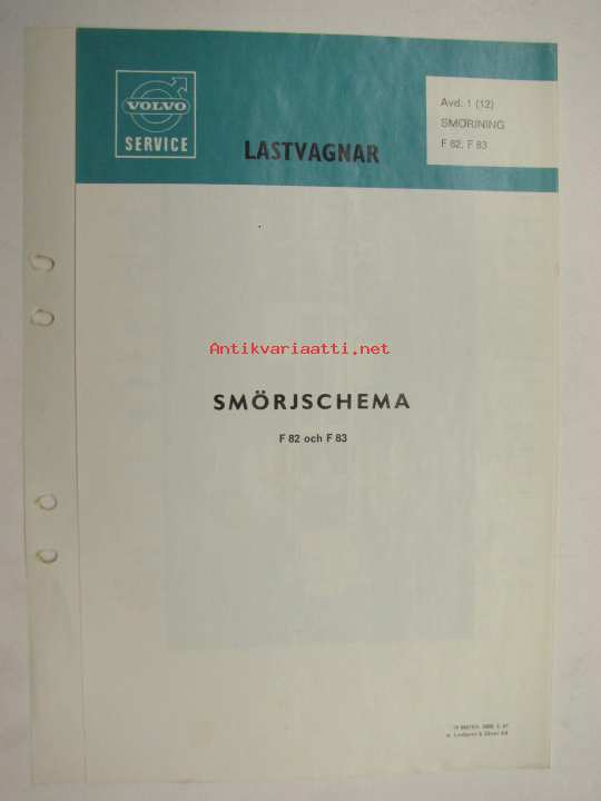 Volvo Ab, 196921 x 30 cm voiteluohje.
