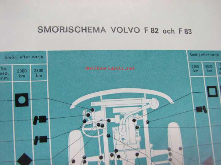Volvo F 82, F 83 Smörjschema -voitelukaavio