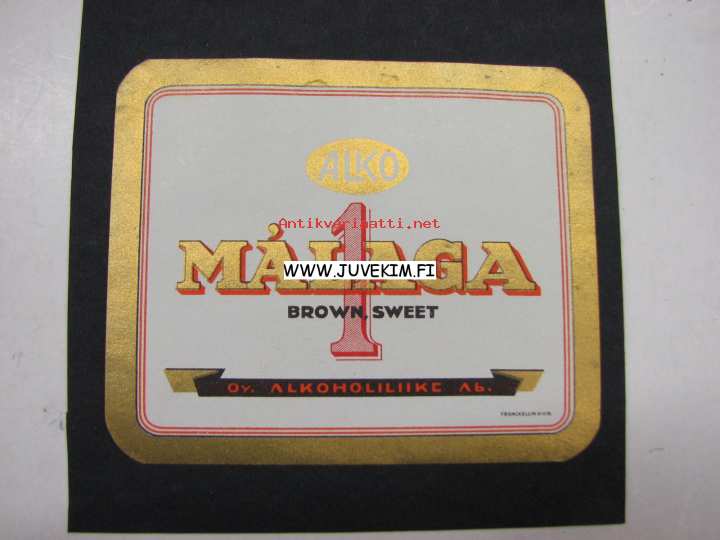 Alko 1 Malaga Brown Sweet -viinaetiketti 1930-luvulta