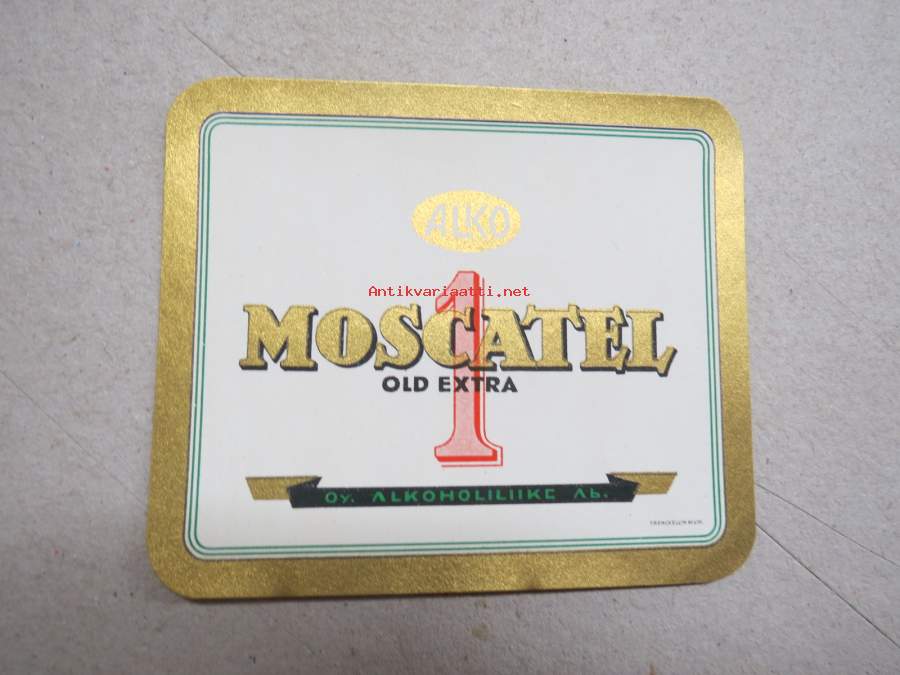 Alko 1 Moscatel Old Extra -viinaetiketti 1930-luvulta