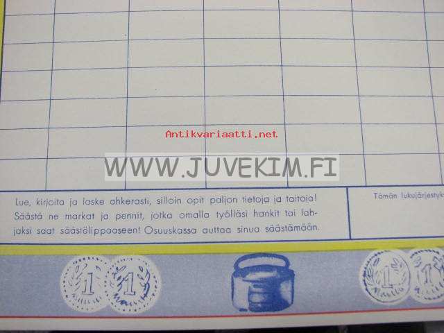 | Saatavilla | 1 kpl | | Julkaisuvuosi | 19 | | Kunto | K3 | | Sidonta/painoasu | Pienpainate | | Kielet | Suomi |