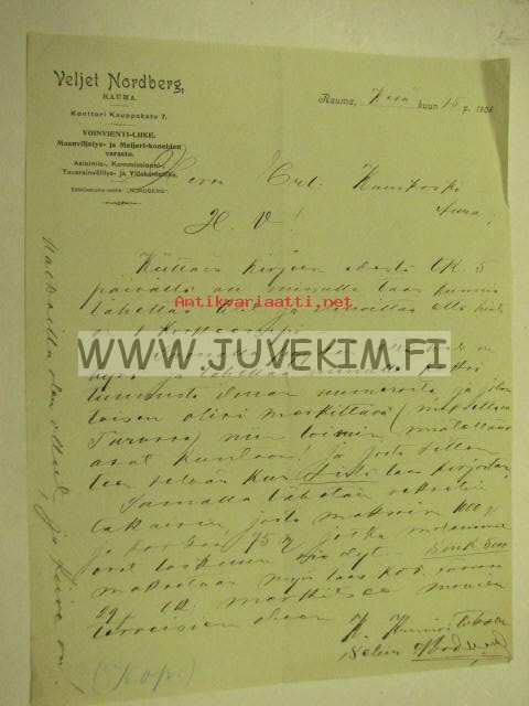 Veljet Nordberg Rauma 15.6.1901 -asiakirja