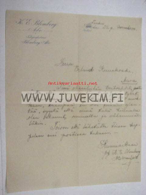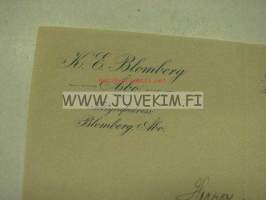 K.E. Blomberg, Turku 22.11.1900 -asiakirja