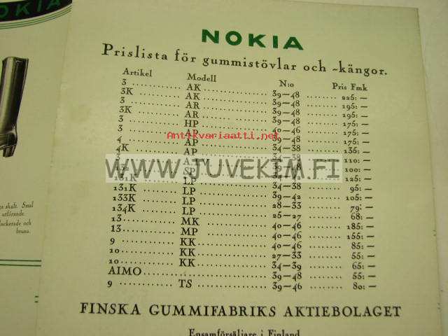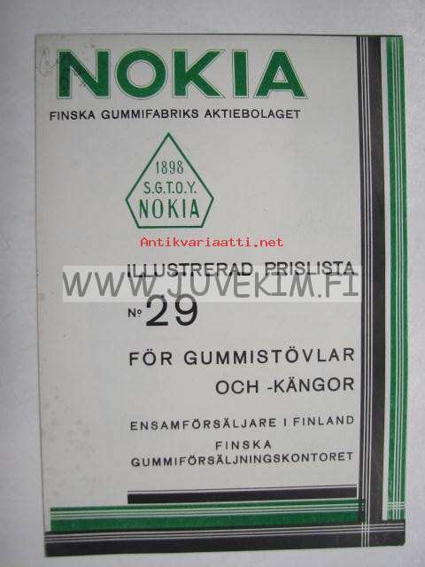 Nokia illustrerad prislista nr 29 för gummistövlar och -kängor