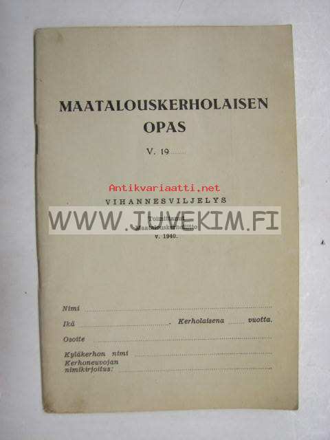 Maatlauskerholiitto, 194011 x 17 cm kirjanen.