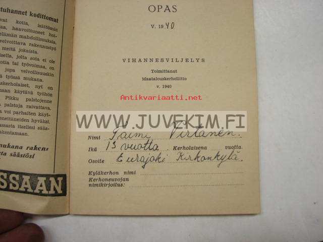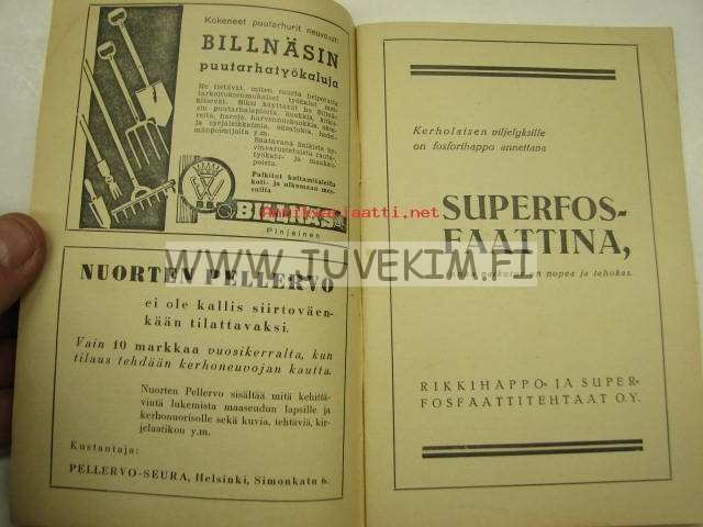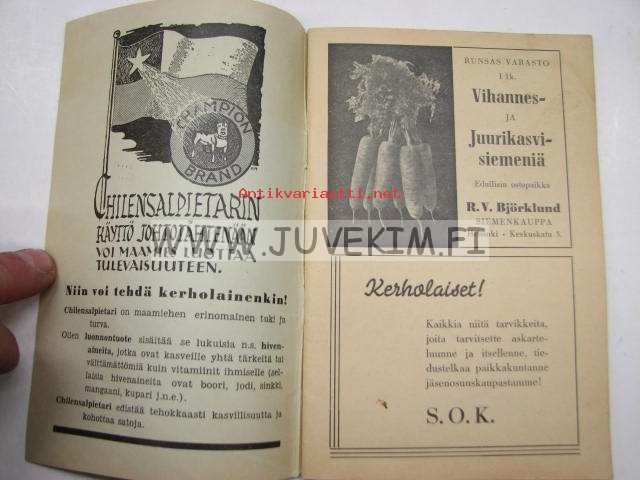 | Saatavilla | 1 kpl | | Julkaisuvuosi | 1940 | | Sivuja | 63 | | Kunto | K3 | | Kielet | Suomi |