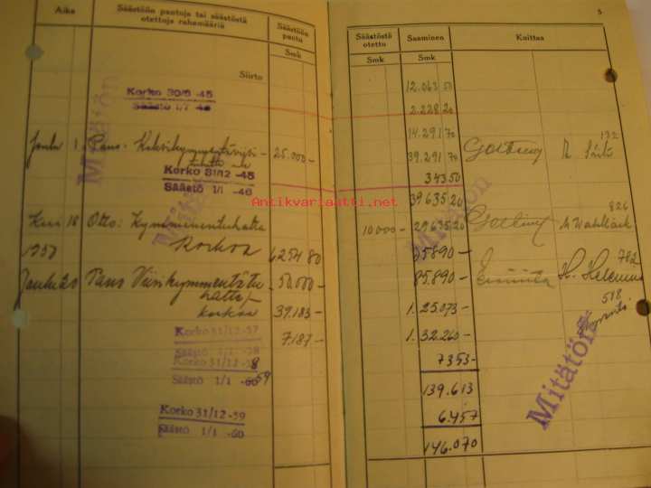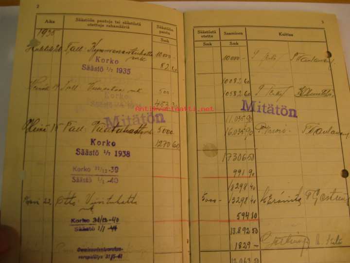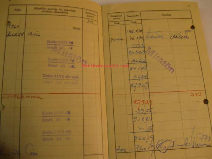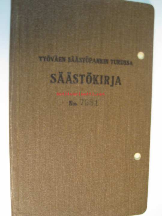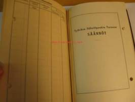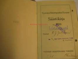 Työväen Säästöpankki Turussa säästökirja huhtikuu 1935 -tammikuu 1975