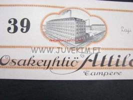| Saatavilla | 1 kpl | | Julkaisuvuosi | 193? | | Sivuja | 1 | | Kunto | K4 | | Kielet | Suomi |
