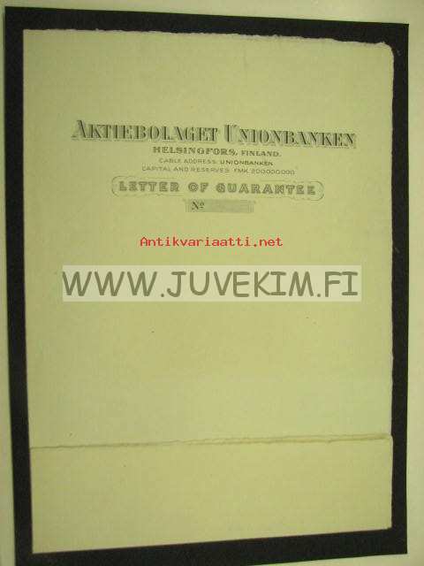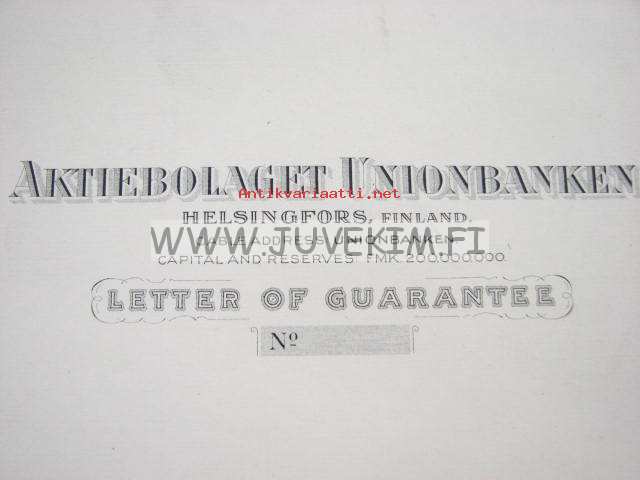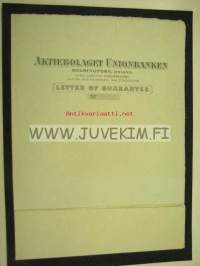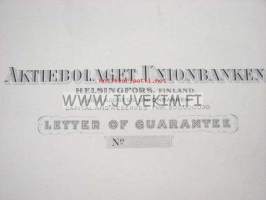 Ab Unionbanken Letter of Guarantee -kirjapainon lomakemalli