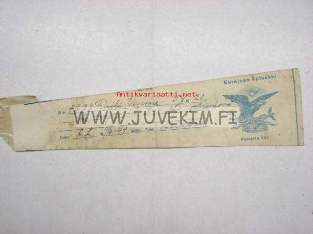| Saatavilla | 1 kpl | | Julkaisuvuosi | 19 | | Kunto | K2 | | Kielet | Suomi |