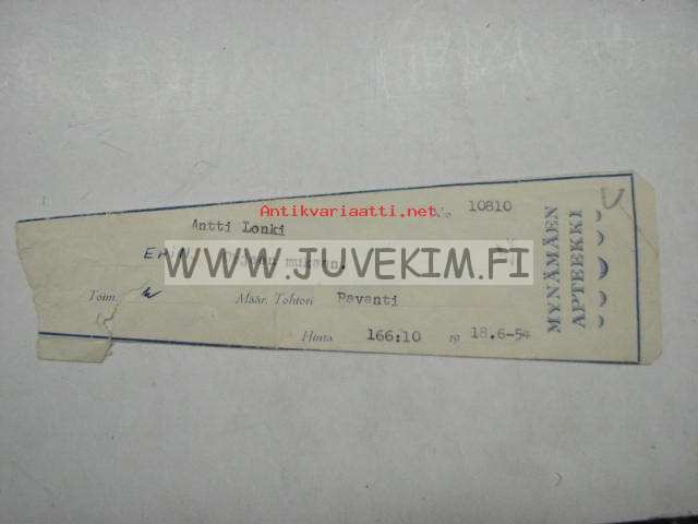 Mynämäen Apteekki -apteekkisignatuuri 18.6.1954