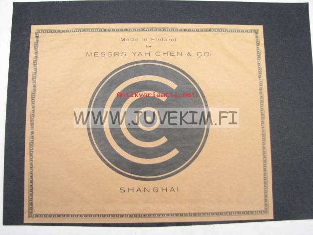 Yah Chen & Co -suomalaisen paperiteollisuuden pakkausetiketti