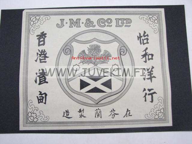 JM & Co Ltd -suomalaisen paperiteollisuuden pakkausetiketti